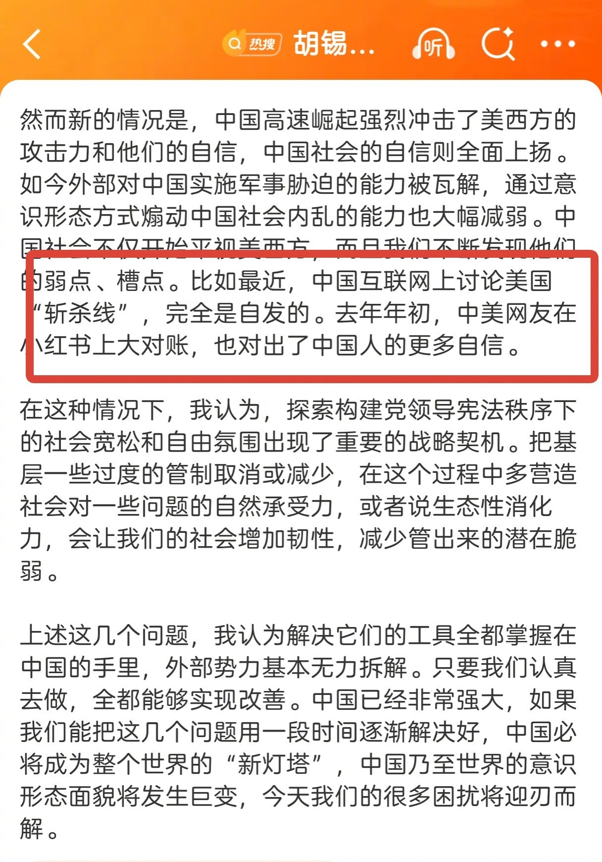 不过一些人指责我没有就牢A的事情发表单独评论,向我施压,我觉得这样做很不好。老胡评论漏掉过很多比较大的事件,原因是多种多样的。我觉得一些人可以反对老胡说什么,批评老胡说得不对,但他们不能强迫老胡必须说什么。